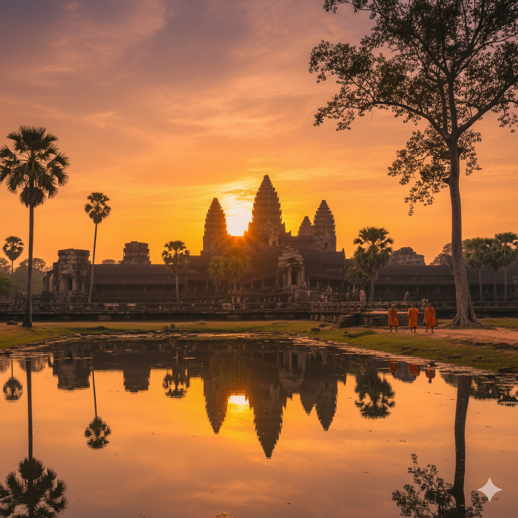 Siem Reap, porte d’Angkor, est une ville douce et vibrante où l’histoire respire à chaque coin de rue. À l’aube, les pagodes safran s’éveillent, les moines bénissent, et les marchés embaument le citron vert, la mangue et le poivre de Kampot. Le jour, on passe des ateliers d’artisans aux galeries, puis aux ruelles fraîches bordées marchés ; le soir, les danses Apsara et les lanternes donnent au centre une âme chaleureuse. À quelques kilomètres, le Tonlé Sap révèle ses villages flottants et la vie lacustre au coucher du soleil. Entre mémoire et renouveau, Siem Reap est l’endroit idéal pour un voyage magique, pleinement culturel—où l’on se relie à la terre khmère et où chaque pas a du sens.